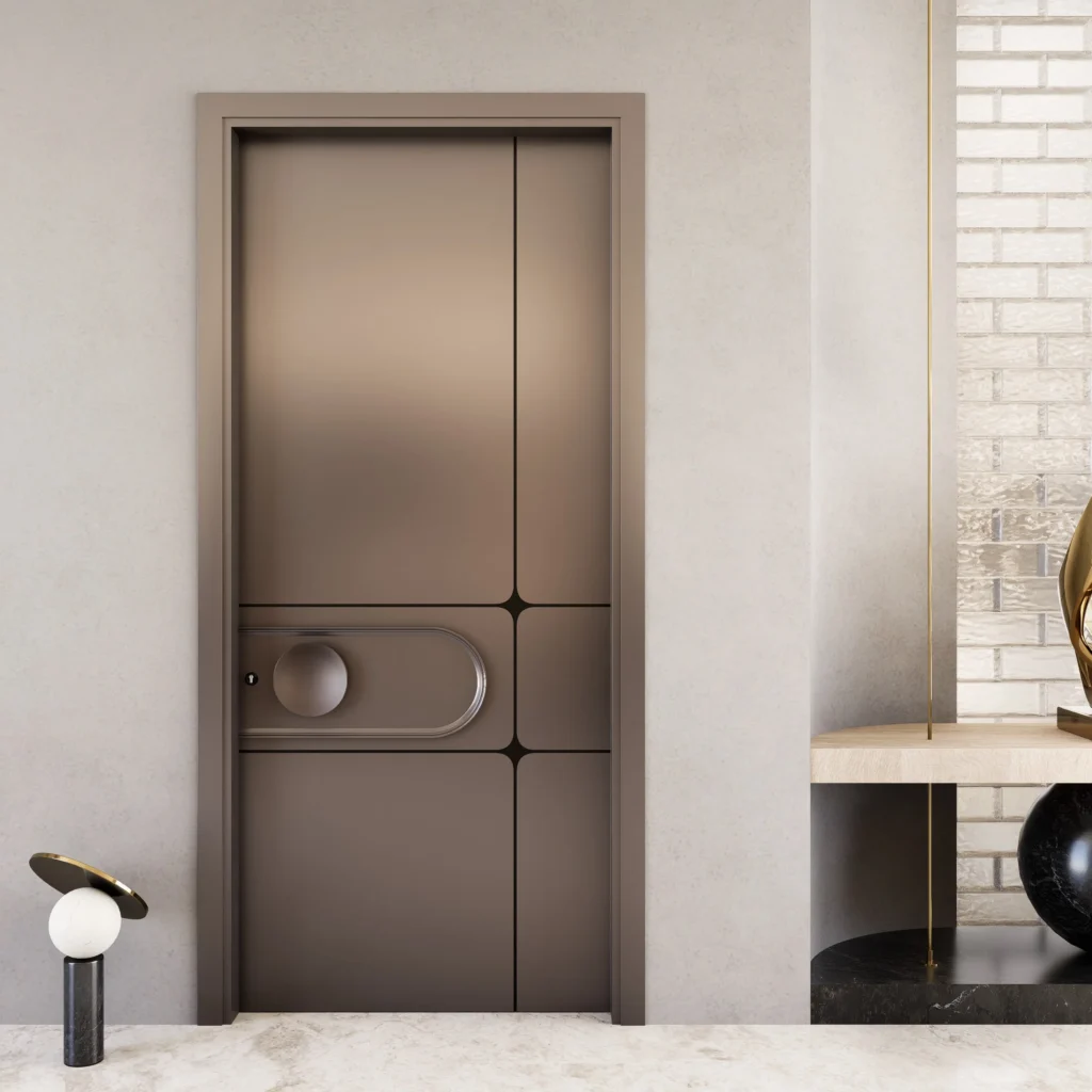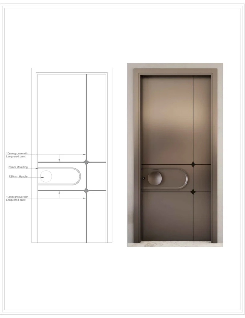 The BDP-03 is a statement piece. It incorporates metallic elements and a unique recessed circular detail that adds physical and visual depth. This door is the perfect choice for main entrances or focal rooms within a luxury property, offering a truly exceptional architectural vision.